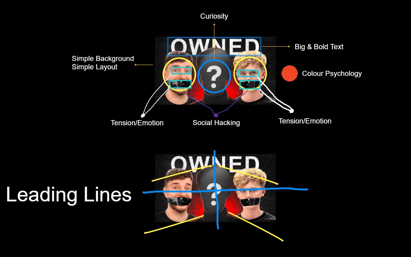 Tension/Emotion is super important in thumbnails because it induces more curiosity.