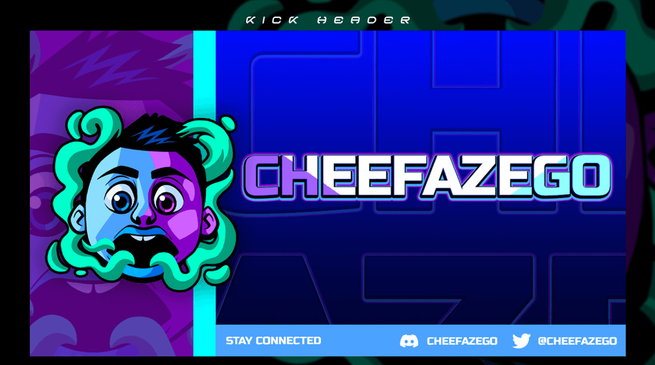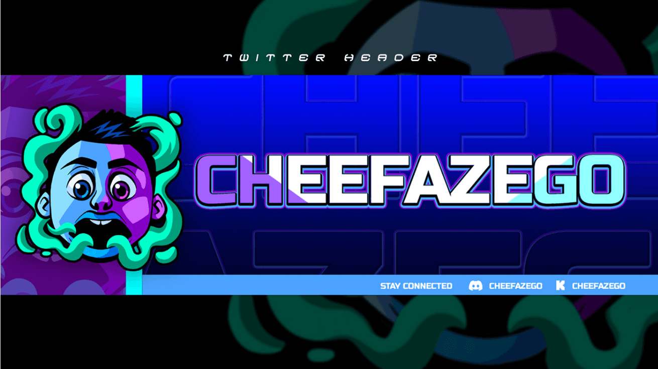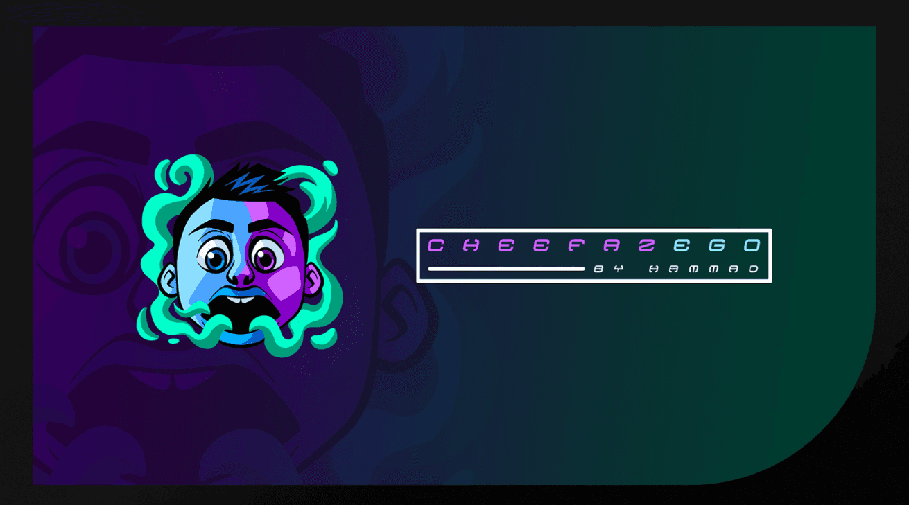 CheefazEGO branding with a cartoon style logo representing the clients personality. Showing vibrant colours to make the overal aesthetic pop! Incorporating smoke into the design somehow showing off the streamers lifestyle and personal hobies and likes.