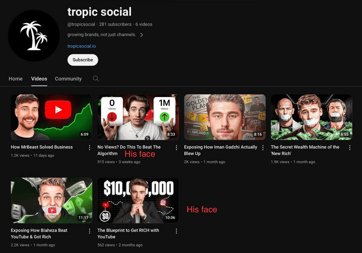 - Whereas if it was the creator’s face (no offence @tropicsocial 😭), you wouldn’t click because you don’t know him